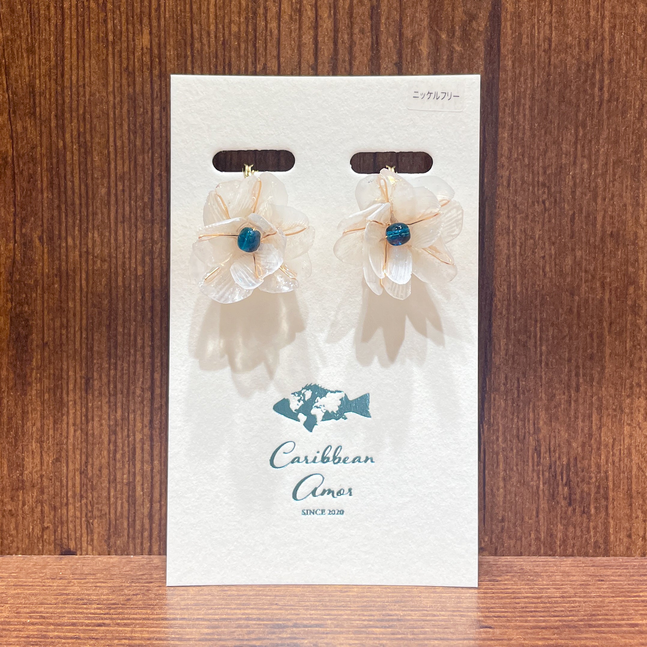 商品詳細手作りの魚の鱗イヤリングまるで耳たぶに一輪の花が咲くような一品です。ニッケルフリーの金具を使用しています。