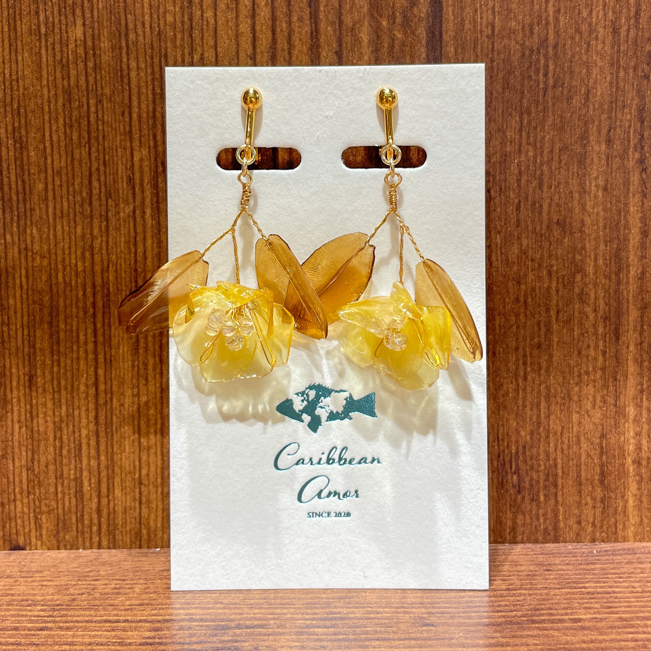 一輪の薔薇(花:クチナシ)(葉:コーヒー) 鱗のイヤリング - は再入荷次第の発送となります。